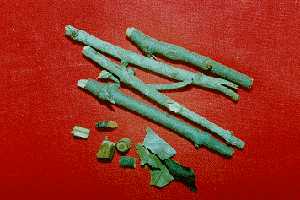 桑寄生段:茎、叶的混合段,粗细不一,长约1-2cm。茎圆柱形,表面灰褐色或红褐色,断面浅粉色,有圆心,留存的叶对生或互生,有柄,边缘光滑无锯齿,黄褐色,似革质而脆。